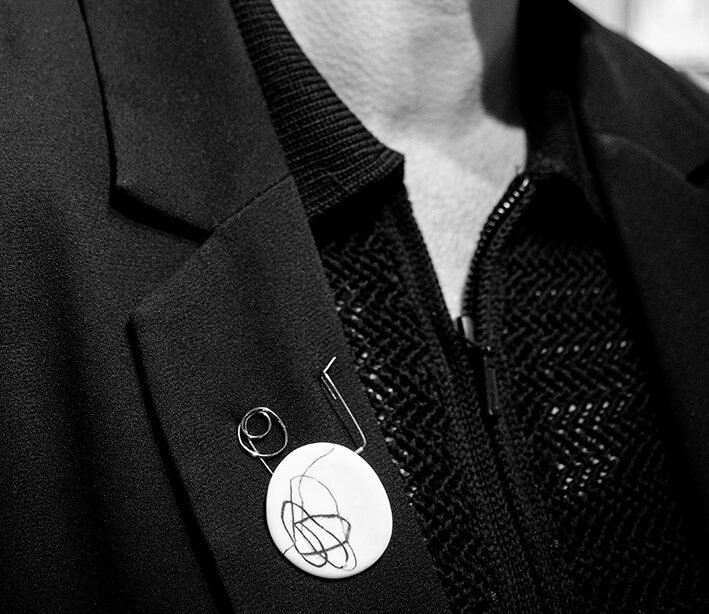 Le motif du dessin d’Elise du « fil d’Ariane » est repris par le fil de la broche.